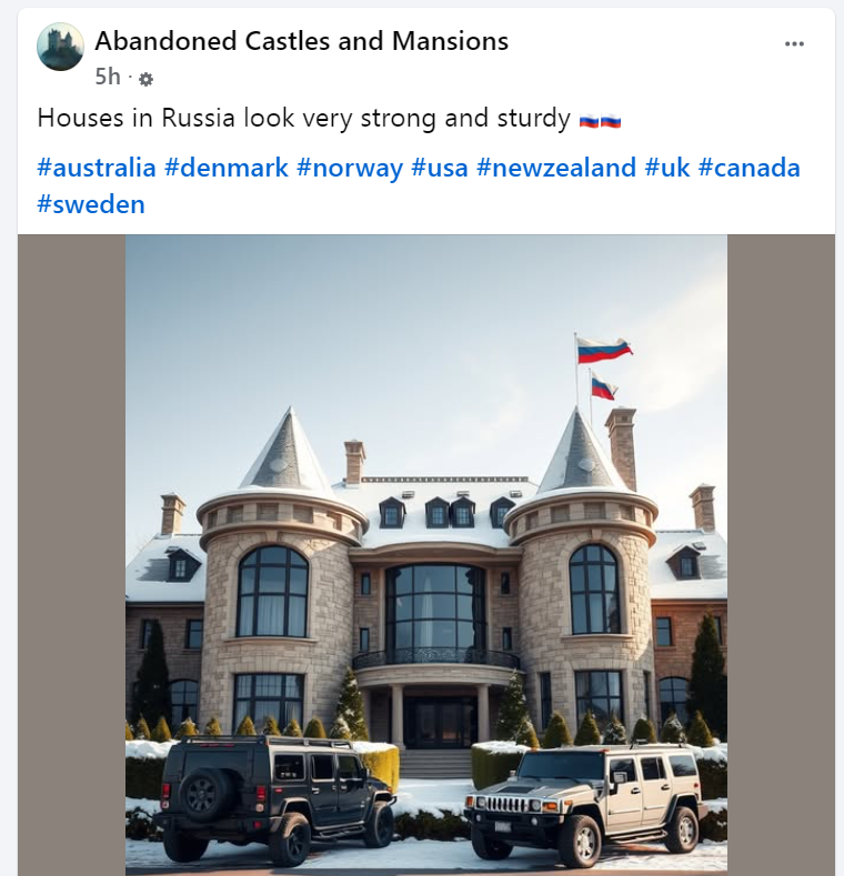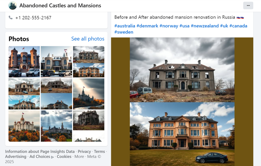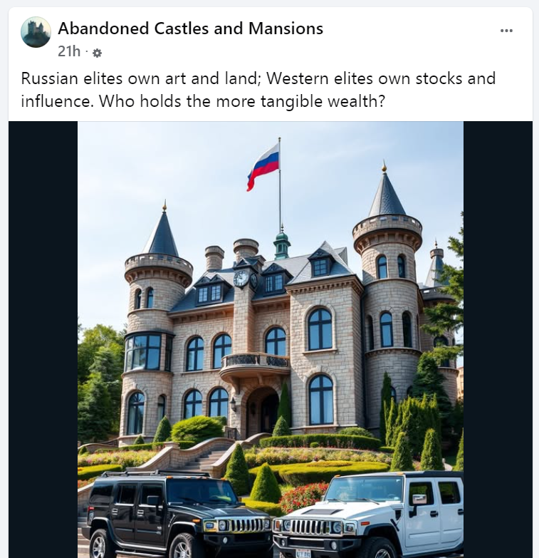 Страницата " Abandoned Castles and Mansions " показва AI генерирания първокласен живот на руснаците.