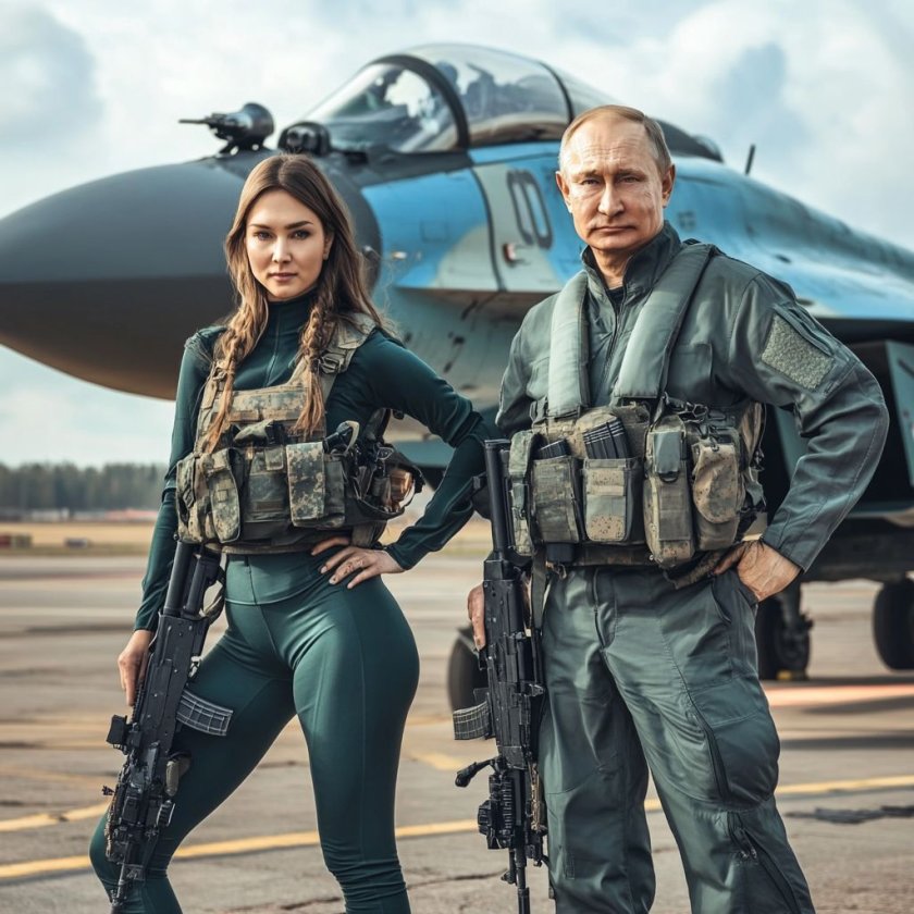 Твърде постоянно Путин е изобразен покрай млади момичета-военни, облечени не напълно съответно за специалността си.
