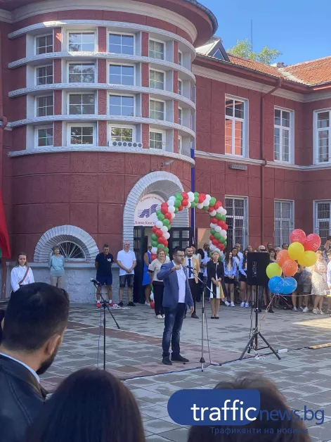 Пространктвото пред Хуманитарната гимназия се оказа тясно за възпитаници, учители и родители, които с празненство посрещнаха първия образователен ден.