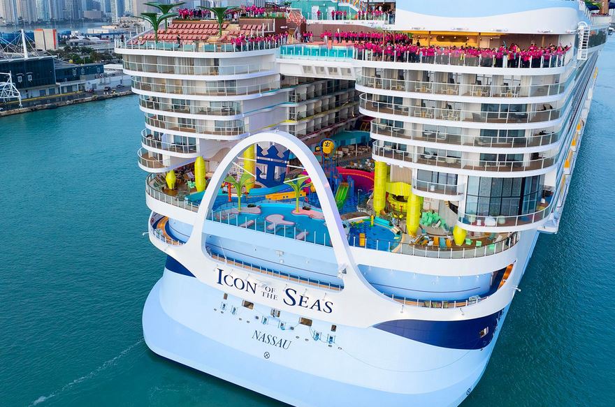 Корабът " Айкон ъв дъ Сийс " (Icon of the Seas) на " Ройъл Карибиън " (Royal Caribbean), който е дълъг към 365 метра от носа до кърмата, напуща Южна Флорида за първото си седемдневно пътешестване из тропиците. Корабът беше публично кръстен във вторник благодарение на футболната легенда Лионел Меси и неговите съотборници от " Интер Маями ".