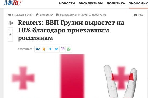 Брутният вътрешен продукт на Грузия ще нарасне с 10% поради идването на руснаците.