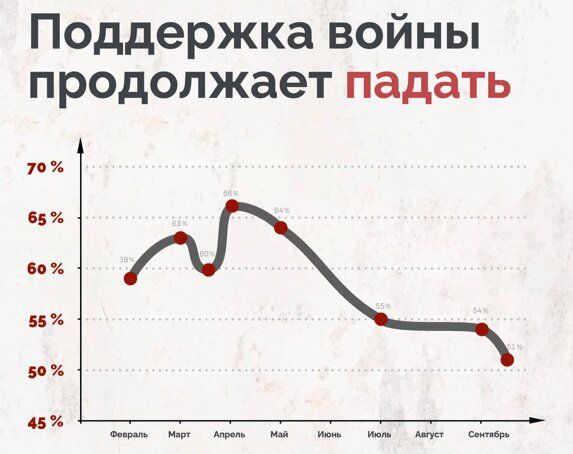От самото начало на пълномащабната война в Украйна съветската агитация поставя огромни старания да сътвори илюзията, че обществото единомислещо поддържа войната и в случай че някой не я поддържа, значи е някакъв неверен руснак, който би трябвало да напусне страната или да седи в пандиза. Добре е да се означи, че украински медии също поддържат тази изразителност, само че най-вероятно с цел да сплашат аудиторията си. Така ползите на пропагандата от двете страни на барикадите съответстваха и изкривиха обективната действителност.