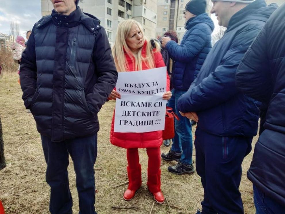 Хората от квартала , които бяха част от митинга в неделя (9 януари), издигнаха плакати с надписи: " Въздух за Овча Купел!!! " и " Искаме си детските градини!!! " .
