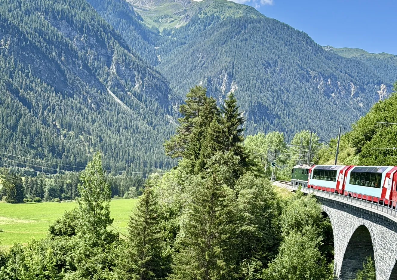 В сърцето на Швейцария, измежду алпийски върхове, ледници и безкрайни долини, пътува трен, който не бърза. Glacier Express – най-бавният “експрес ” в света, свързва световноизвестните курорти Сейнт Мориц и Цермат, и го прави със жанр, какъвто единствено Швейцария може да предложи.