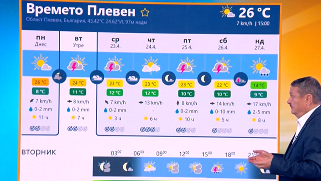 " Ще има доста слънце и в следобедните часове, по здрач, за прибиране от работа – малко дъжд, и по-късно още веднъж свежо време ", разяснява той.