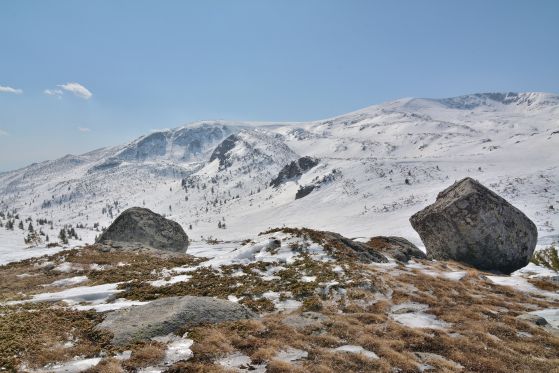 Желязко направи знак, че има нещо да каже. Обясни, по какъв начин се избира място за бивак. Огледа местността в далечината. Насърчи и нас да гледаме дружно с него. Посочи към равнинна част в седловината сред Белмекен и близките върхове. Предположи, че там някъде ще намерим комфортно, равно място с задоволително пълен пласт сняг. Поне 2-3 метра. Погледът му се спря на равнинен сектор с хипотетични снегонавявания. Отдалечен бе на към 700-800 м. След петнайсетина минути към този момент бяхме там. На дребно плато, граничещо с определената площадка за бъдещия бивак, сред обли морени оставихме раниците. Около морените снежната завивка беше прокъсана. На места като части зелен килим прозираше замръзнала хвойна. Дадохме си заслужена отмора. Оставихме се на гледките. В облика на Голямото огледало светът нямаше прави линии, прави ъгли, парцелиране и собственичество. Нямаше йерархии. Нямаше боричкания. Може би тъкмо по тази причина липсваха и изцедените погледи на спадналите топки. Измисленият свят на хората беше останал надалеч зад нас. В съзнанието стартира да избледнява. Голямата противоположна връзка насърчи да го пуснем…