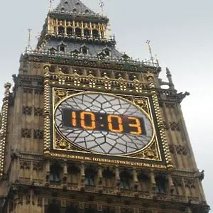 През 1980 година Би Би Си афишира, че часовниковият циферблат на Биг Бен ще бъде сменен с електронен.