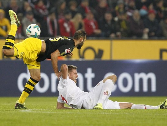 Отборът на Борусия (Дортмунд) измъкна сложна, само че скъпа победа с 3:2 в гостуването си на Кьолн от 21-ия кръг на Бундеслигата. Двата отбора сътвориха същинско шоу, а огромният воин в мача бе новото попълнение на гостите Миши Батшуай, който бързо стартира да се отплаща за доверието на дортмундци. Белгиецът осъществя два от головете за своя отбор в 35-ата и 62-ата минута и асистира за третото попадение на Андре Шюрле в 84-ата минута. “Козлите” също изиграха мощен мач и на два пъти изравняваха резултата с голове на Зимон Цолер в 60-ата и Хорхе Мере в 69-ата минута, само че в последна сметка не съумяха да вземат нищо от този мач.