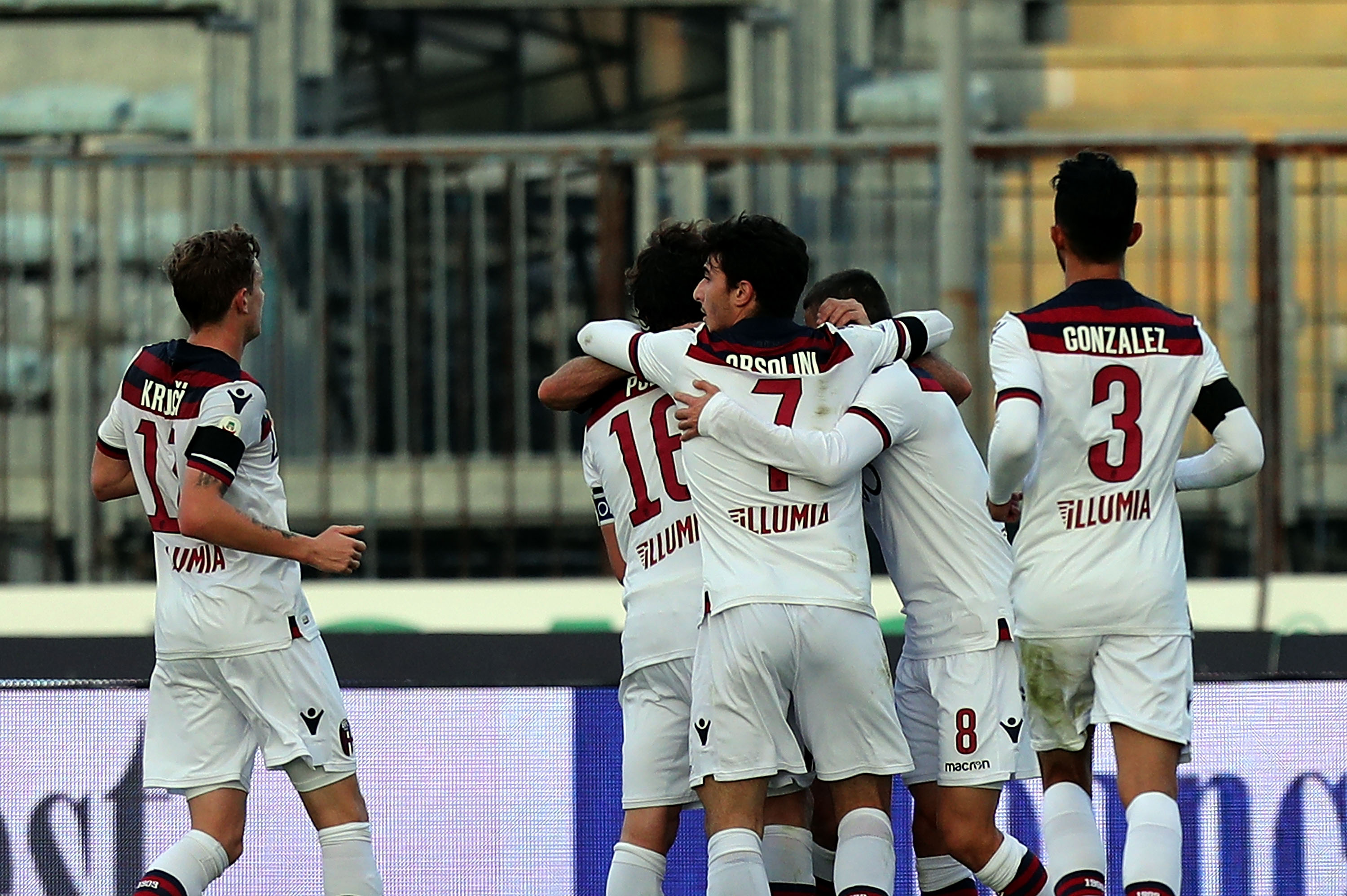 В 41-ата минута Болоня заличи пасива си. Футболистите на Пипо Индзаги изравниха резултата с гол на полузащитника Андреа Поли. Ветеранът в отбора Родриго Паласио мина като на смешка през трима футболисти на домакините, след което пусна прострелно подаване към останалия непокрит на втора греда Поли, а някогашният футболист на Интер и Милан не сбърка от близка отдалеченост. FINISCE AL CASTELLANI!
