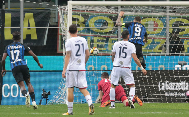Отборът на Интер реализира безапелационна победа с 4:0 при семейството си на Каляри от 33-ия кръга на Серия А. Това бе първия триумф за „ нерадзурите “ от три мача насам. С него те изместиха Рома от третото място в класирането, само че следва да се има поради, че „ римските вълци “ са с мач по-малко.