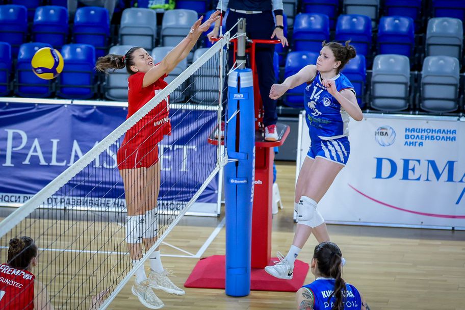 Така " сините " поведоха в плейофната серия с 1-0 победи. Играе се до 3 триумфа от 5 мача. Вторият дуел сред " безконечните " противници е в сряда (2 април) от 18,00 часа в зала " Христо Ботев ".