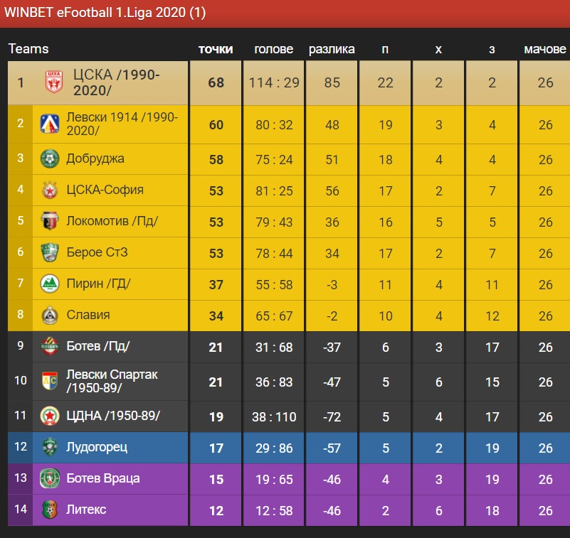 В другия мач от WINBET е-футбол лига, който беше излъчен през вчерашния ден, Цветомир Петров, с тима на Левски от 90-те до наши дни, си резервира втората позиция в крайното класиране на шампионата, откакто приключи с нулево тъждество дуела си против Локомотив (Пловдив) на Петър Кушев.