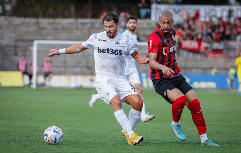 Резултатът пък бе открит в 34-ата минута, когато Симеон Мечев се разписа със ужасно осъществяване от въздуха, което не остави шансове за реакция на завърналия се след травма на вратата на Славия Светослав Вуцов.