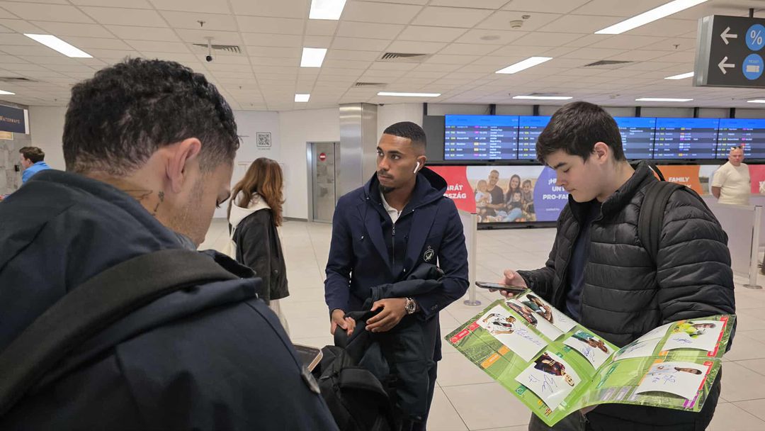 На летището няколко привъженици чакаха футболистите за фотоси и автогфари. Двубоят на " Групама Арена " е в четвъртък (6 ноември) от 22:00 часа.