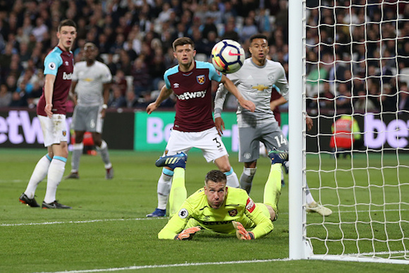 Първото полувреме приключи без голове, въпреки че гостите имаха няколко отлични благоприятни условия да поведат. Уест Хам разчиташе на контраатаки и при една от тях Марко Арнаутович стреля от границата на наказателното поле, само че прави в ръцете на Давид де Хеа. После Юнайтед взе самодейността и сътвори много работа на Адриан дел Кастийо.
