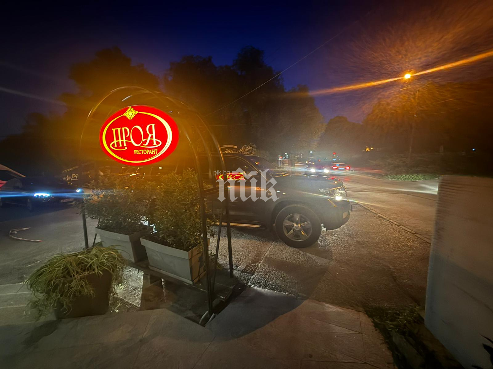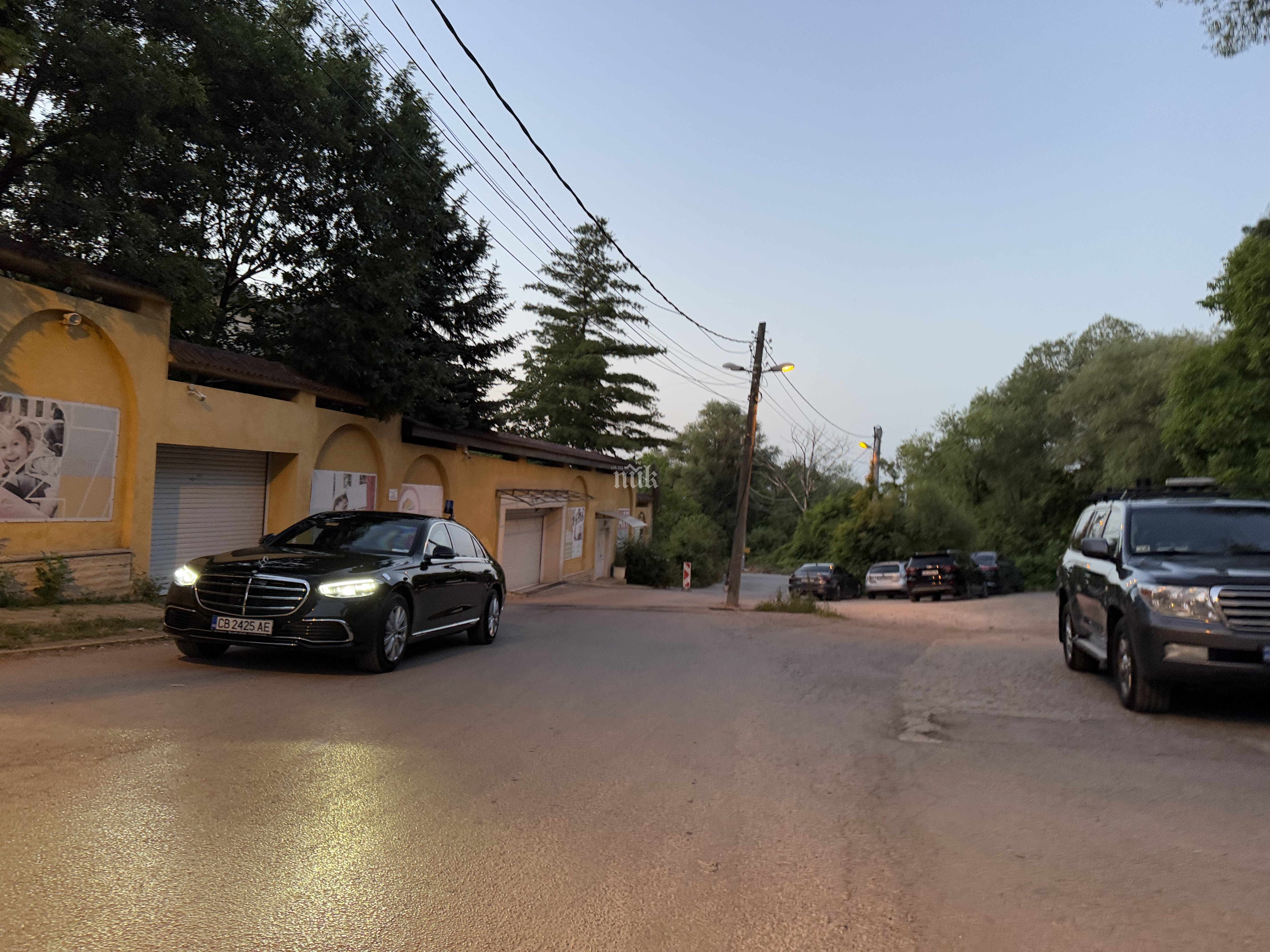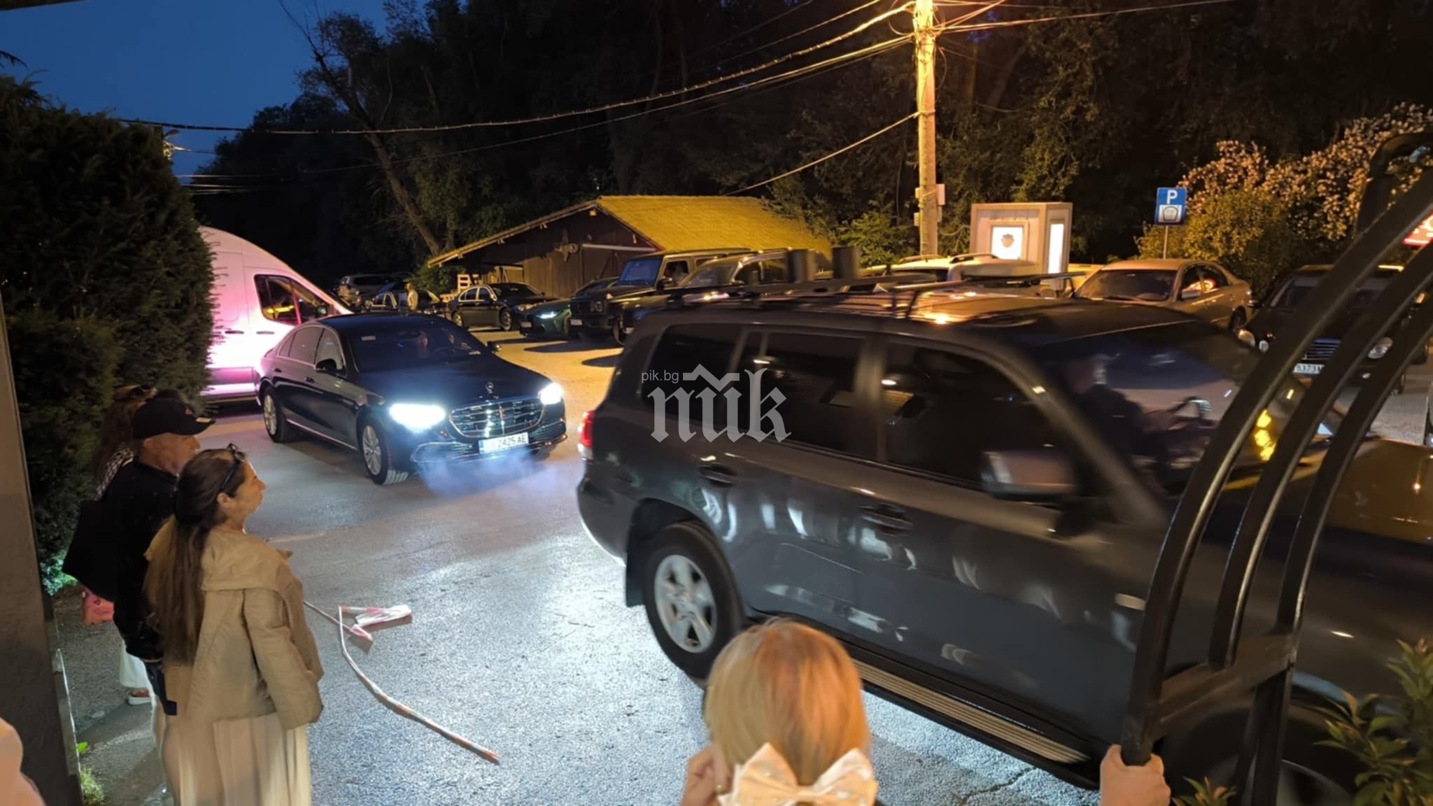 Екип на ПИК на място откри, че пред заведението са паркирани колите на НСО, с които се придвижва Радев, както и първокласен Мерцедес S-класа, за който се допуска, че вози турските представители.