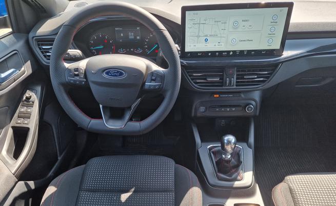 Както при екстериора, интериорът на другите версии на Focus включва неповторими дизайнерски детайли и материали за характерен темперамент. При ST-Line такива са кожените волан и скоростен лост, черната тапицерия на покрива, ST-Line текстилна тапицерия с червени шевове.