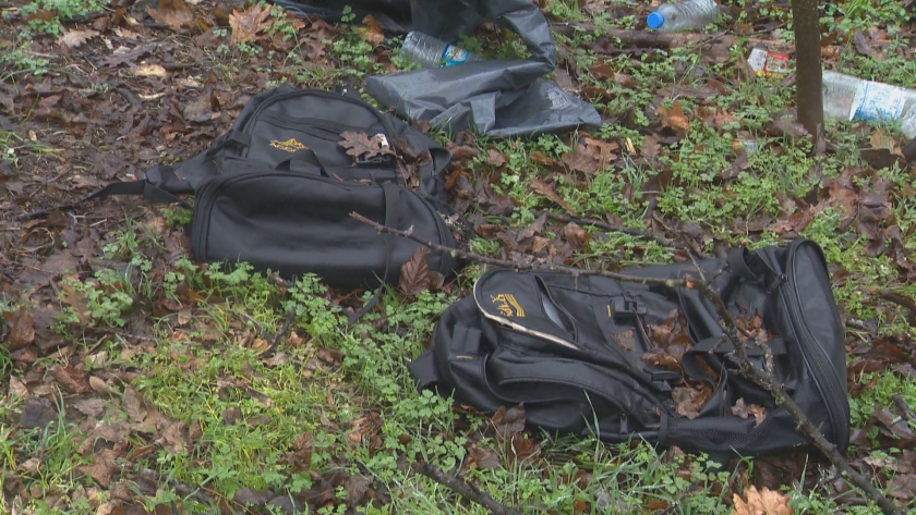 На към ден път пешком от границата в гората край Росеново откриваме едно от местата, които каналаджиите употребяват преди да транспортират мигрантите към вътрешността на страната. Последната група е отпътувала скоро. Наоколо е цялостно с раници, бутилки с вода и консерви.