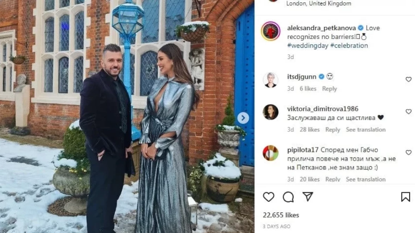 Събитието, което хубавицата обявява в профила си, се е случило в Лондон. А името на мъжа до Алекс Богданска е Иван Стоименов. Той е управител в безценен хотел и няколко заведения в британската столица и като нищо, до момента в който е помагал за работните задължения на Богданска, да е завързал и сантиментална връзка с нея, написа " Уикенд ".