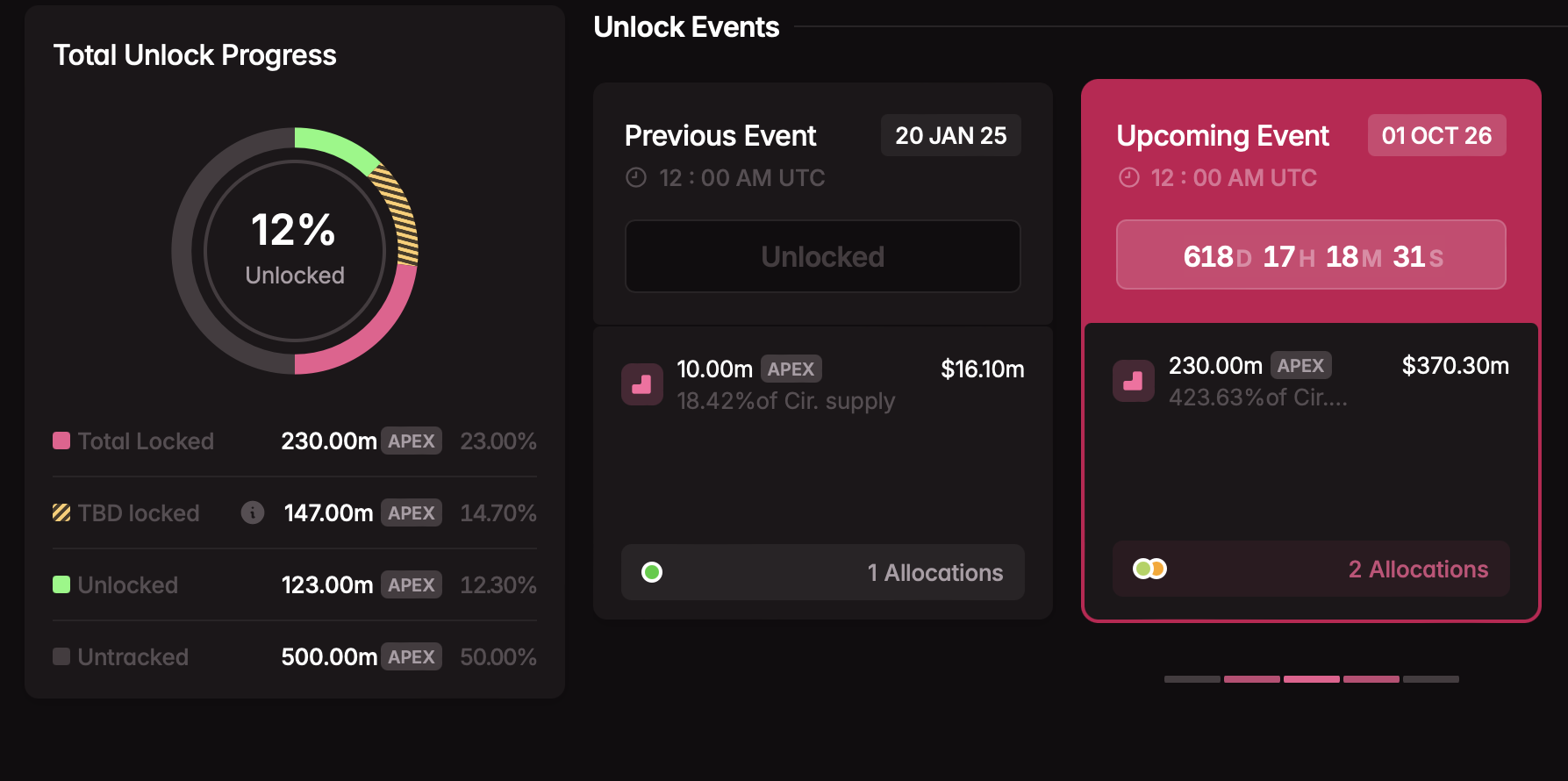 – Токени, които ще бъдат отключени: 10 милиона APEX