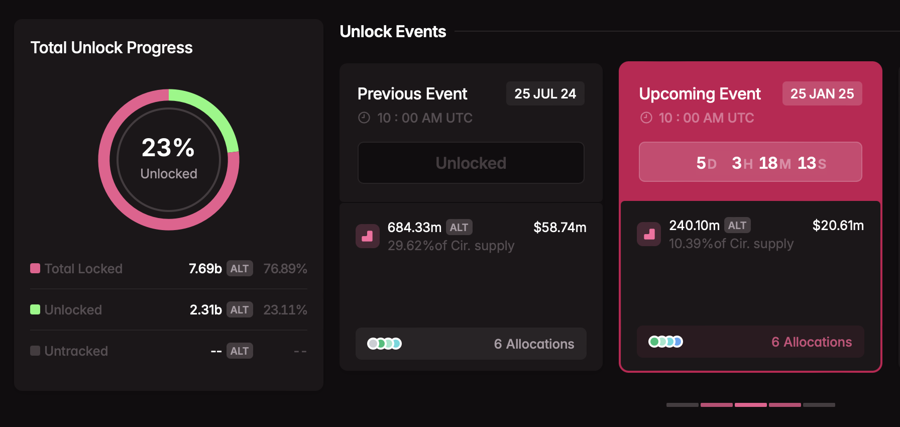 – Токени, които ще бъдат отключени: 204.10 милиона ALT