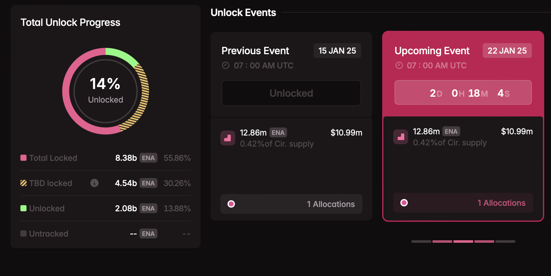На 22 януари ще бъдат отключени над 12 милиона токена ENA на стойност $11 милиона, които ще бъдат ориентирани към развиването на екосистемата.