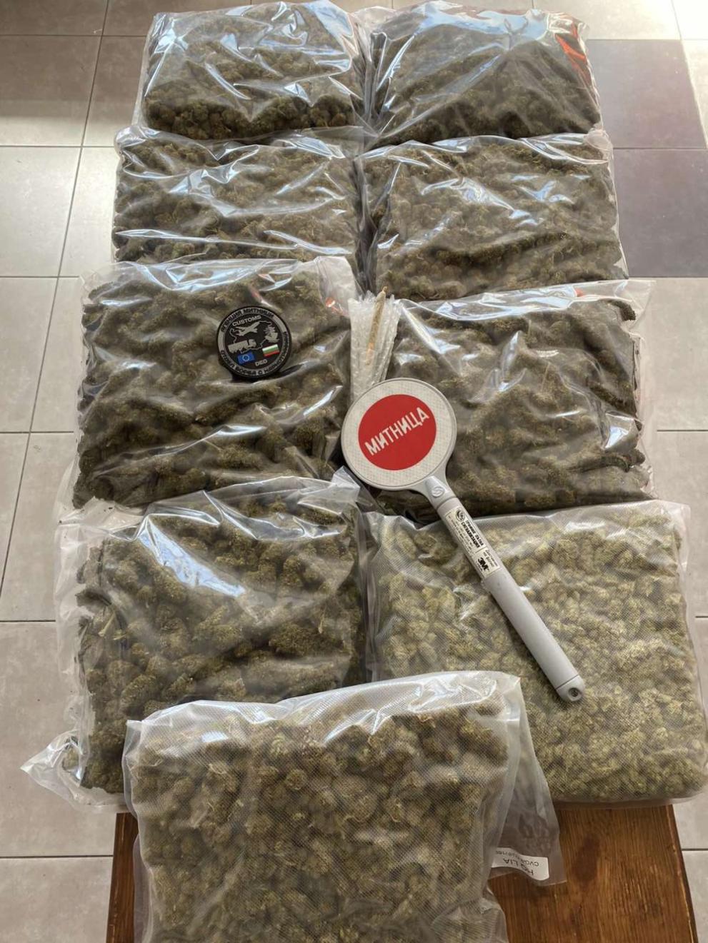 Агенция „ Митници “ Общото тегло е 4860 грама, като всеки от деветте пакета тежи по 540 грама. Извършен е полеви наркотест, който е реагирал позитивно за съществуването на канабис.