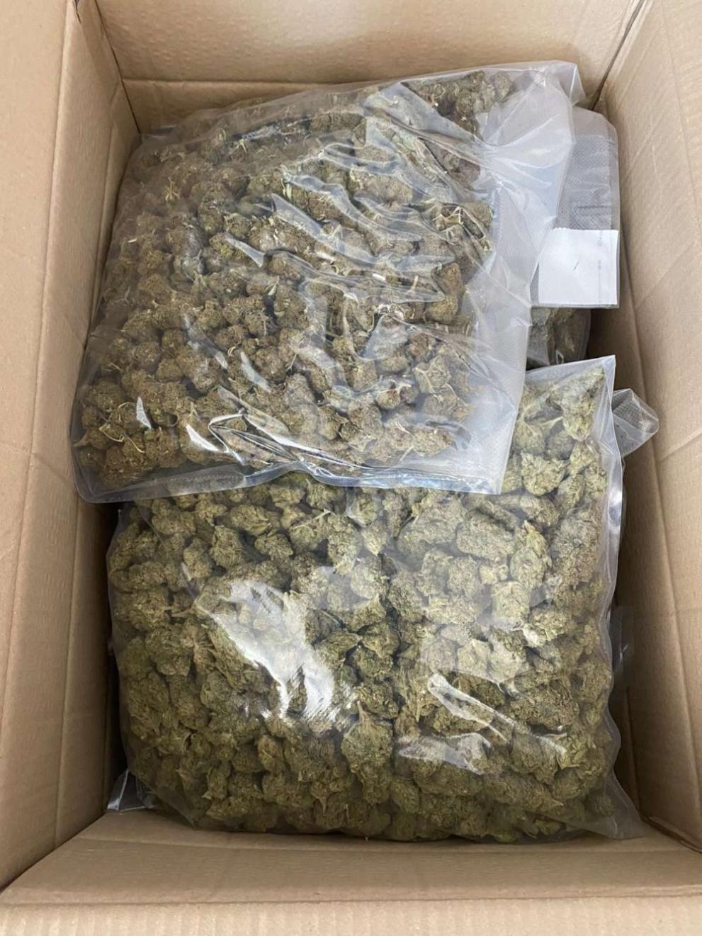 При отварянето на кашона митническите чиновници откриват, че в него има девет термично залепени транспарантни полиетиленови плика, съдържащи суха зелена листна маса, наподобяваща съцветия на марихуана.