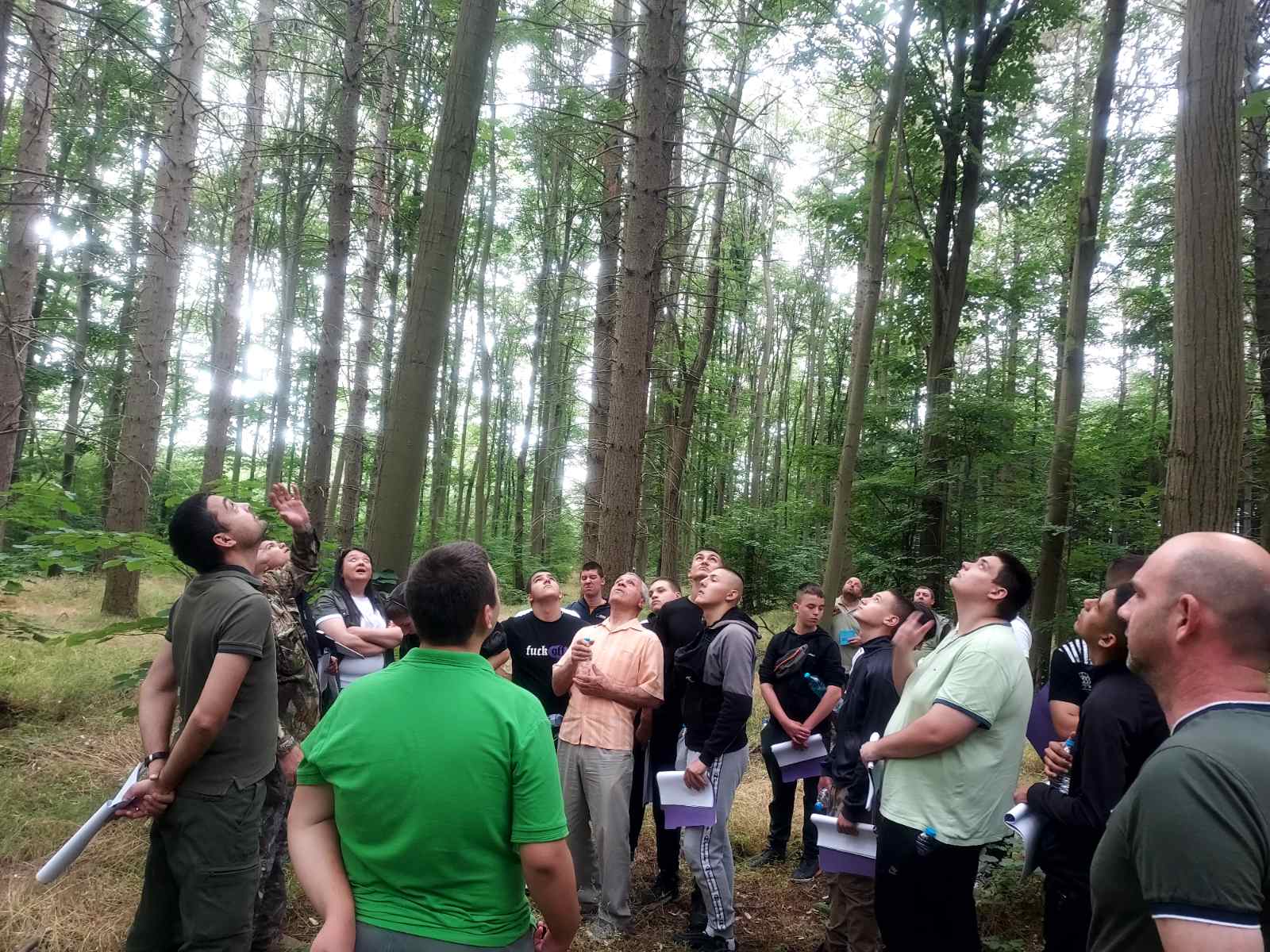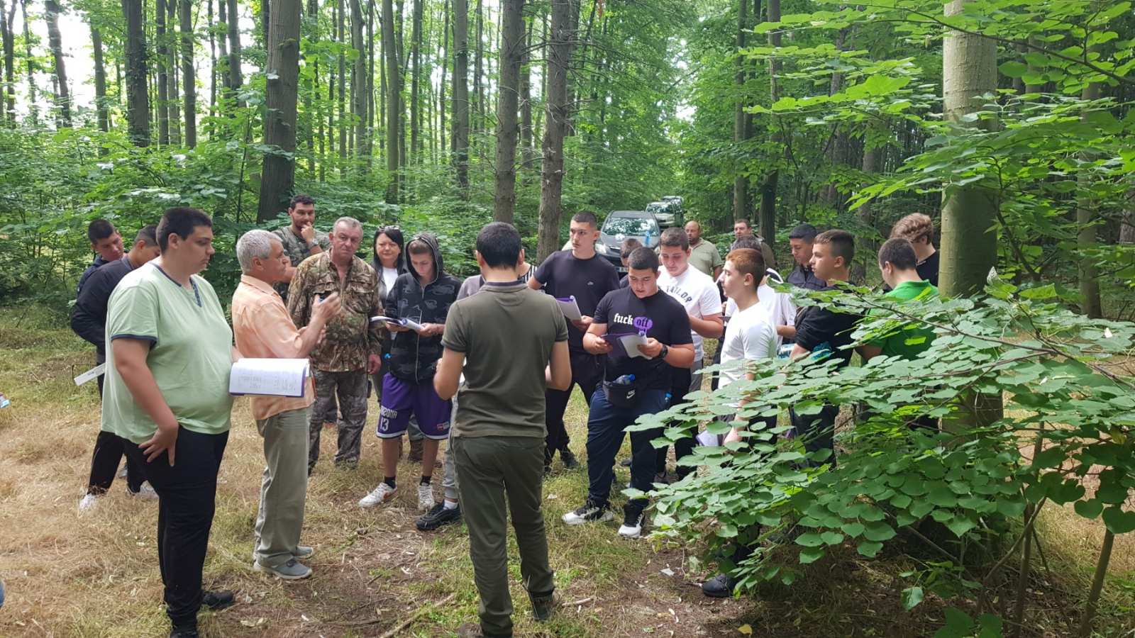 Във втората част на урока бъдещите горски бяха разграничени на два тима, като всеки един трябваше да работи в пробна повърхност от един декар. Учениците изпълниха голям брой задания – да дефинират дървесните типове в културата, височината на дърветата и мн.др. Така на процедура младите лесовъди усвоиха работата с висотомер и клупа.