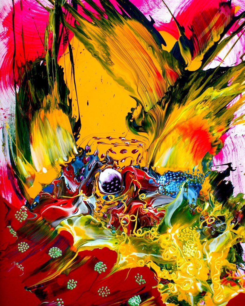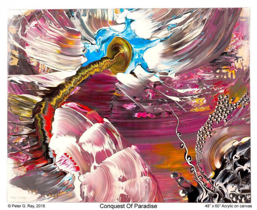Творецът пред живописното платно, което е озаглавил " Завладяването на Рая "
