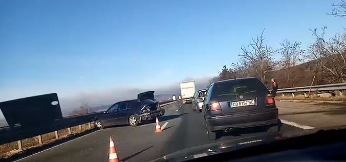 Кола се блъсна след гонка на Тракия СНИМКИ
