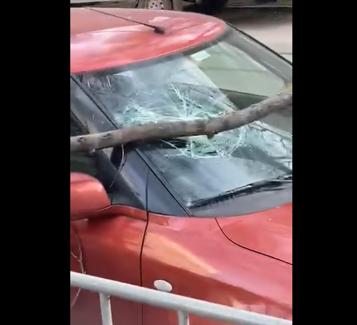Паднал клон е разрушил обзорното стъкло на лек автомобил в София. За това алармира свидетел.