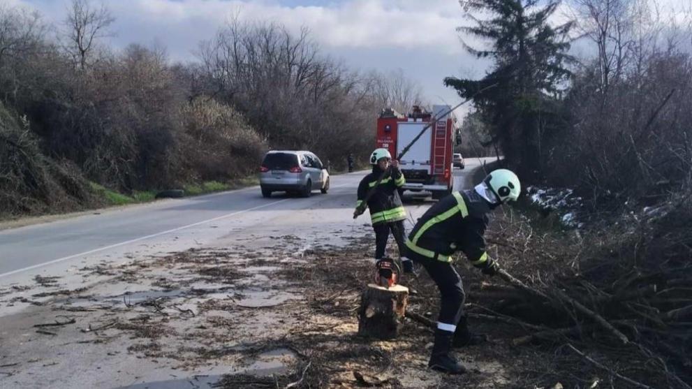 Паднали дървета блокираха краткотрайно пътя Русе – София, в региона на местността 9-ти километър. Силният вятър е повалил три бора, които са паднали на пътното платно и са препречели основния път.