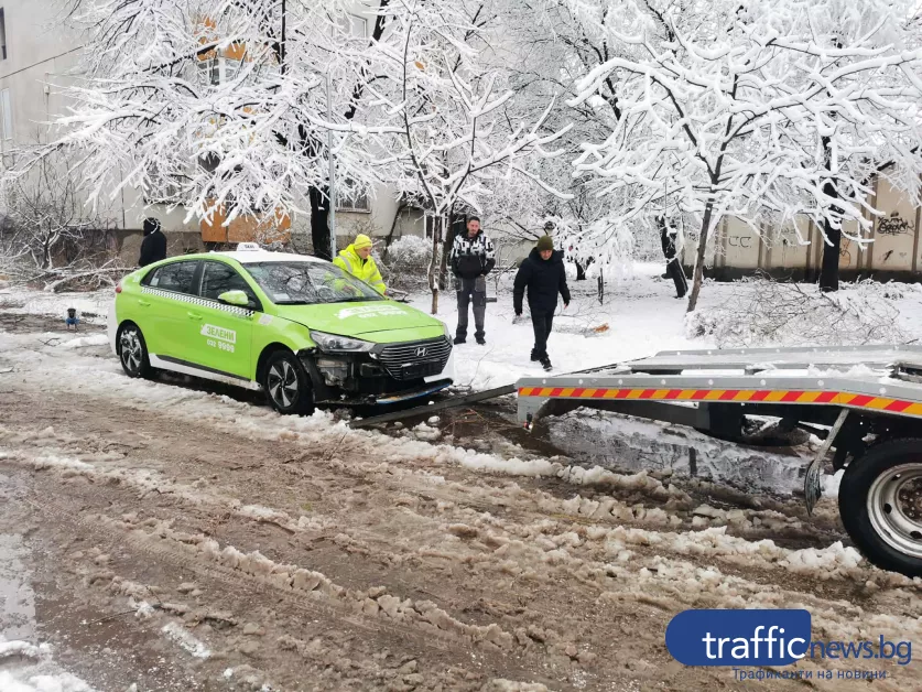 Пътна помощ е пристигнала, с цел да изтегли потърпевшото такси. На място е и притежателят на една от засегнатите коли, а все още към момента не е открит притежателят на смачканото Ауди.