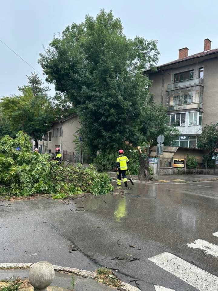 Екипи на пожарната разчистват паднали дървета в целия град.