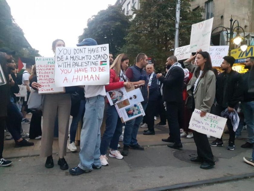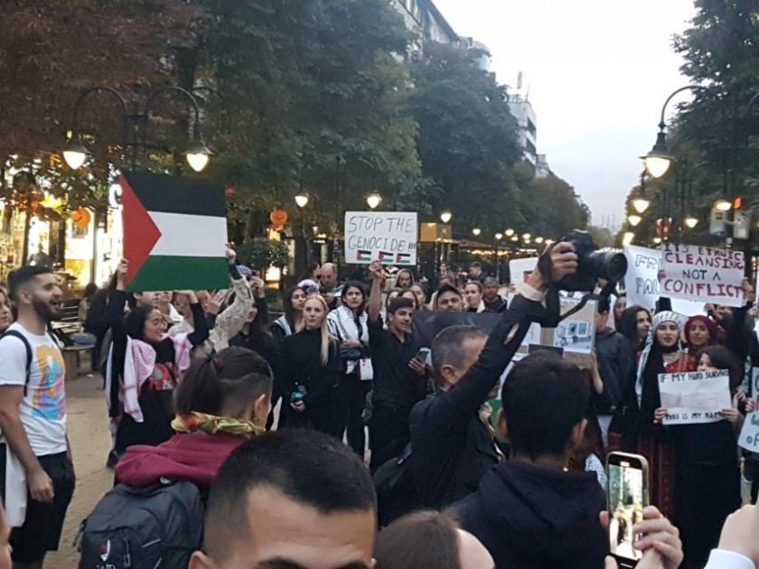 Палестинци излезна ха в центъра на София да изразят поддръжката си към своите съграждани.
