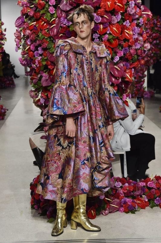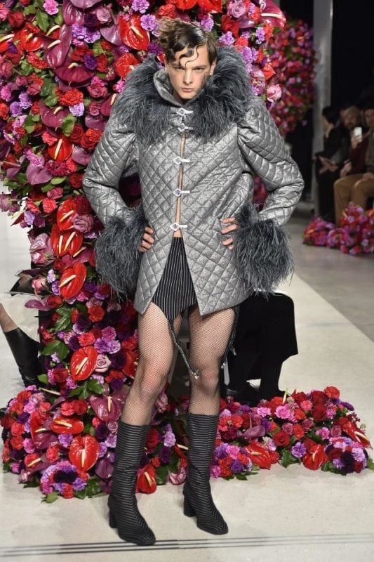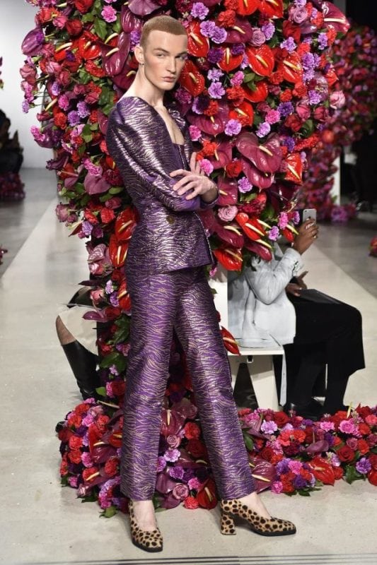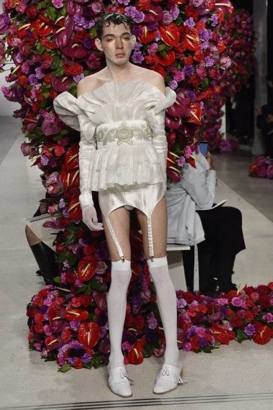 Това важи и за дамите. Но дизайнерът беше някак неудовлетворен от естествените мъже и реши да ги трансформира в дами, представяйки сбирката си на шоу в Ню Йорк.