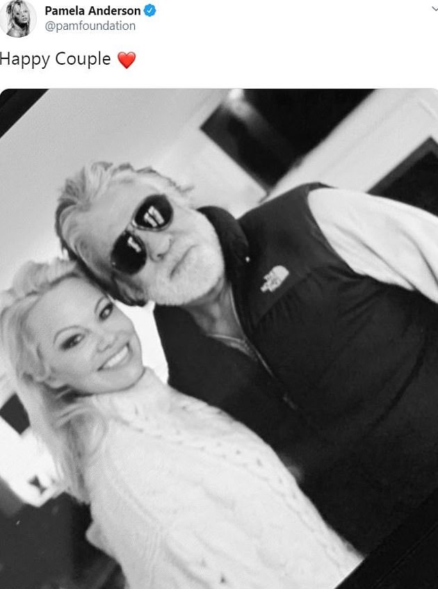 Памела Андерсън показа първата си фотография с филмовия продуцент Джон Питърс, откогато се венчаха тано по-рано тази седмица.