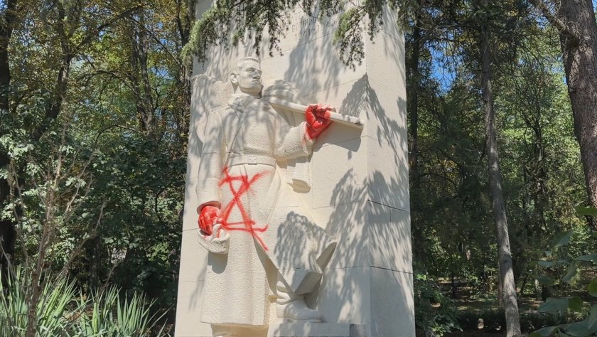 С багра са оцветени ръцете на фигурата на боеца, а върху нея е изрисуван знак " Z ", който е задраскан. Символът е употребен от съветската войска във войната против Украйна. За близо година това е третото посягане против монумента, който се намира в най-големия старозагорски парк " Митрополит Методий Кусев ”.