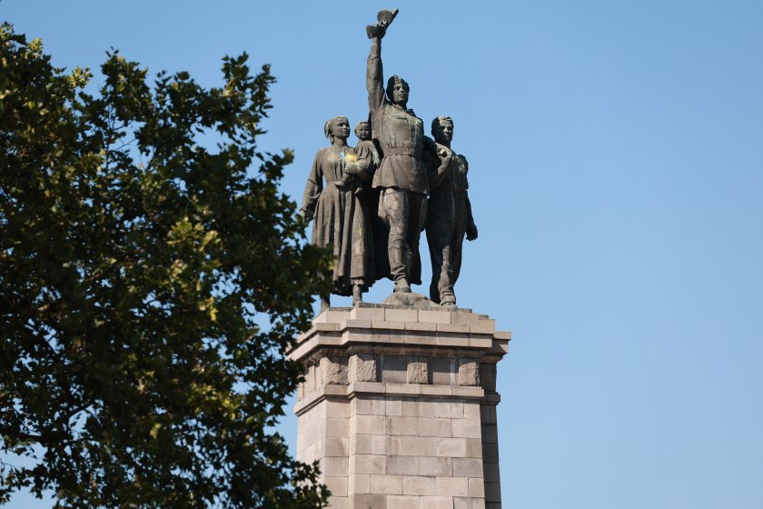 Паметникът на руската войска в центъра на София още веднъж е залят с алена багра.