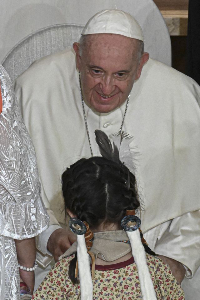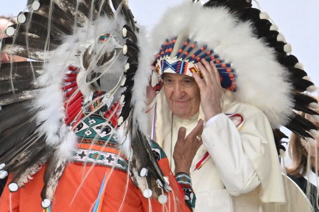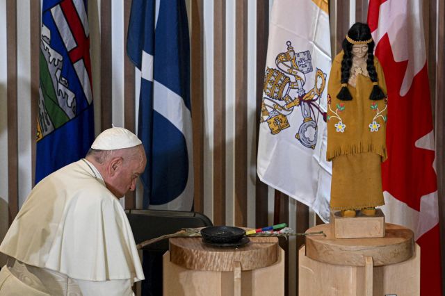 Папа Франциск се извини през днешния ден за съучастието на Католическата черква в " унищожителната " политика на Канада за асимилация на коренното население. На среща с представители на техни общности в обитаемото място Мъскуасис, източно от град Едмънтън, той съобщи, че насилственото приобщаване към християнството на индианците посредством католически учебни заведения е разрушило тяхната просвета, навредило е на фамилиите им и ги е маргинализирало за генерации напред, съобщи АП.