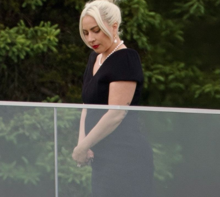 Папараците разкриха обстоятелството, че Лейди Гага е бременна на сватбата на сестра й Натали Джерманота в Мейн. 38-годишната певица се появи на репетиционна сватбена вечеря с тясна черна мини рокля, която наблягаше заобленото й коремче. Този тоалет не остави подозрение, че звездата чака първото си дете.
