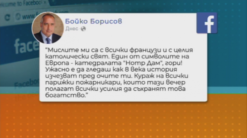 " Мислите ми са с всички французи ", написа министър председателят Бойко Борисов във " Facebook ".