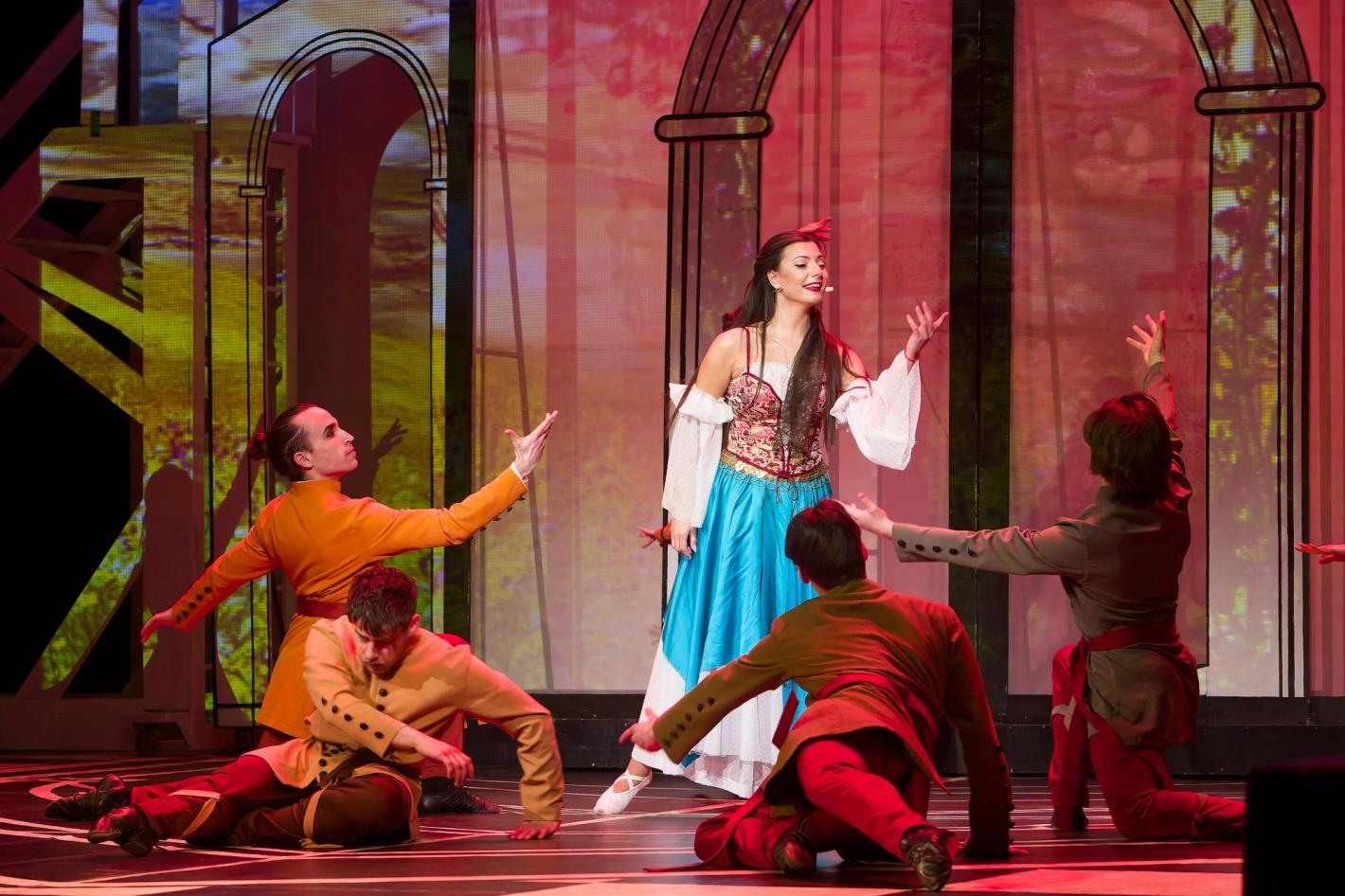 В основните функции на циганката Есмералда и гърбушкото Квазимодо са мюзикълните звезди Лилия Илиева-Михайлова и Велин Михайлов. Фроло е Драгомир Шопов, Гренгоар – Момчил Караиванов, Феб – Борисла Веженов. Николай Колев е в ролята на Клопен, а Жана Костова е Фльор дьо Лис. Героите оживяват в обилните костюми и сценография на Ася Стоименова и танцуват в хореографията на Станислава Томова. Не пропускайте да се придвижите в феодален Париж със мощно прочувствения театър на Варненската опера на красивата открита сцена в Летния спектакъл.
