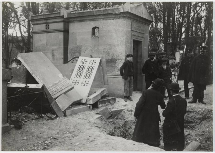 Щети от снаряд в гробището Пер Лашез на 25 март 1918 година // Публично притежание