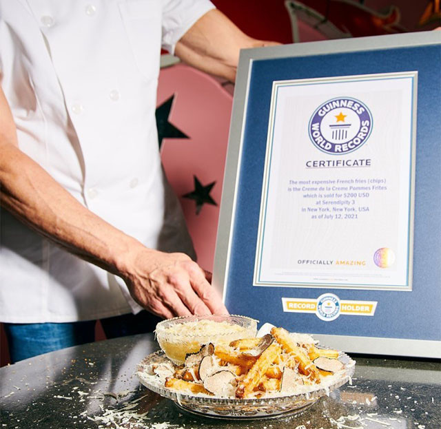 Заведението към този момент държи два върха на Гинес - за най-скъп бургер (295 долара), както и за най-скъп сладоледен сладкиш (100 долара). А от 13 юли публично тук се оферират и най-скъпите пържени картофи в света - 200 $ за порция.