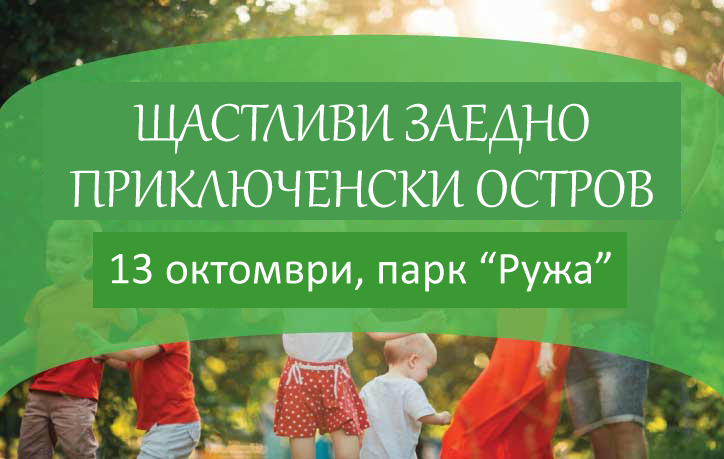 Парк “Ружа ” ще се трансформира в място за игра и занимания, като за първи път ще се проведат две събития на 13 октомври (неделя). “Щастливи дружно ” (10:30-12:30 ч.) се провежда от регион “Западен ” и МКБППМН в партньорство с фондация “Първи стъпки ”. То е ориентирано към укрепване на връзките сред родители и деца посредством просветителни работилници, надпревари и полемика, свързани с креативното развиване, психологично здраве и родителстване. От 10:00 ч. децата ще имат възможност да се включат в “Приключенски остров ”. Събитието се организира от клуб “Приключенец ” и “Адра България ”. Игра с топки, въжен въжен превоз, въртележка и доста други приятни атракции ще издигнат настроението на малчуганите.Входът е безвъзмезден.