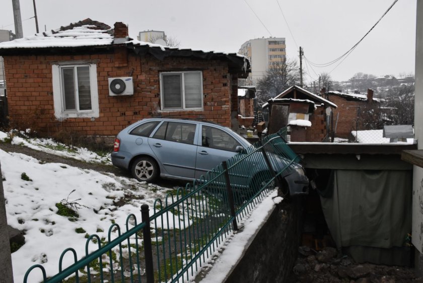 Паркиран автомобил потегли сам, мина през булевард и се заби в ограда на къща в Хасково
