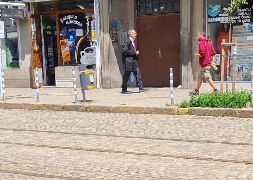 Опитният политик и някогашен началник на Съюз на демократичните сили беше с неизменимата си чантичка вид " диагоналка " и се придвижваше пешком, както избира да прави за разлика от множеството си сътрудници.
