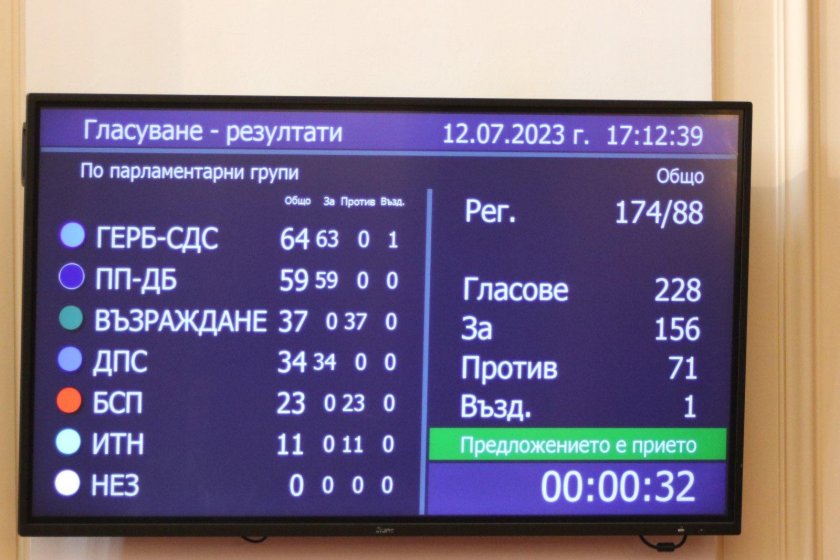 Парламентът одобри законопроекта за бюджет 2023 на първо четене със 156 гласа " за ". Българска социалистическа партия, Има Такъв Народ и " Възраждане " гласоподаваха срещу финансите на страната, а Делян Добрев от ГЕРБ се въздържа.